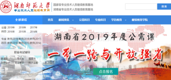 根据规定,继续教育培训内容包括公需科目的培训且不少于30学时。2019年2月,湖南省人社厅下发《关于做好2019年专业技术人员继续教育有关工作的通知》(湘人社函[2019]24号),今年的继续教育工作正式启动,并确定“一带一路与开放强省”作为19年公需课培训主题。衡阳市专业技术人员是否完成公需科目的培训,将直接影响到职务聘任和更高一级职称申报。目前,湖南师范大学专业技术人员继续教育网已经正式上线了2019年公需课,课程共30个学时,衡阳市专业技术人员可在线注册、登录及学习。