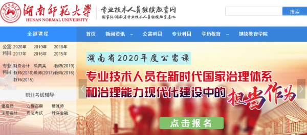 日前,湖南省人社厅发布文件《关于做好2020年专业技术人员继续教育有关工作的通知》(湘人社函〔2020〕11号),我省2020年专业技术人员继续教育工作正式启动,确定2020年度公需科目主题为“专业技术人员在新时代国家治理体系和治理能力现代化建设中的担当作为”。湖南省专业技术人员申报职称,需要完成公需科目的培训且不少于30 学时,不参加公需科目培训的话将失去评定职称的资格。那么,湖南省专业技术人员在哪里参加2020年公需科目培训呢?前来湖南师范大学专业技术人员继续教育网即可进行学习!